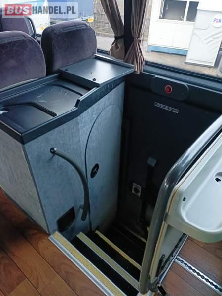 : video, WC, kabina sypialna, fotele odchylane, siateczki, ABS, ASR, tempomat, retarder, CD, podnóżki, stoliczki, mikrofon, klimatyzacja, radio, regulacja wysokości nadwozia, podwójne szyby boczne, elektryczne lusterka, DVD, ESP