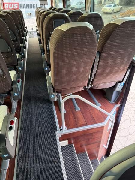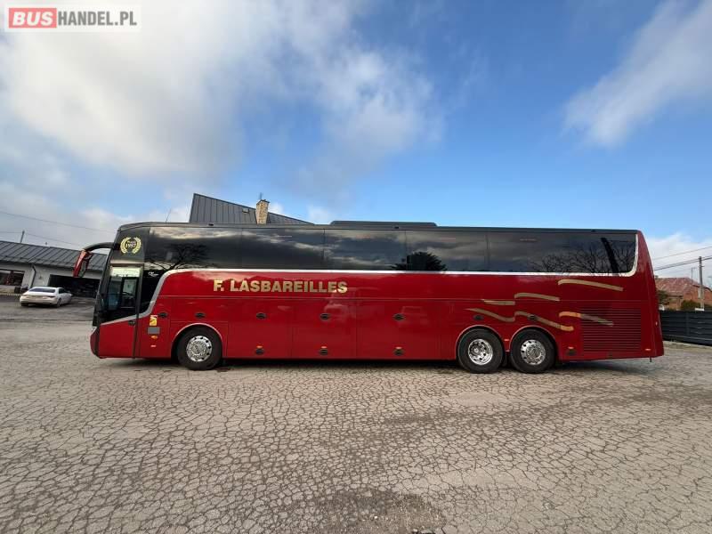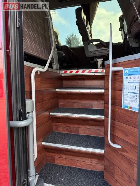 : klimatyzacja, WC, lodówka, kabina sypialna, oświetlenie indywidualne, nawiewy dyszowe, podnóżki, stoliczki, siateczki, ABS, ASR, tempomat, retarder, mikrofon, fotele odchylane i rozsuwane, rampa dla inwalidów, sejf, regulacja wysokości nadwozia, centralny zamek, podwójne szyby boczne, wspomaganie kierownicy, elektryczne lusterka, ogrzewanie stacjonarne, ESP