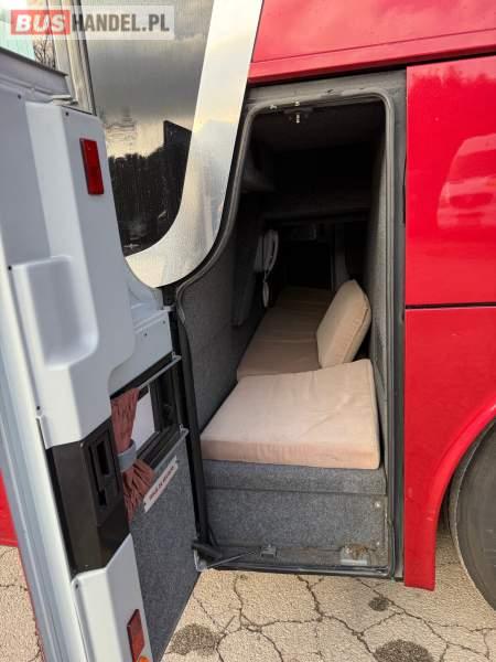 : klimatyzacja, WC, lodówka, kabina sypialna, oświetlenie indywidualne, nawiewy dyszowe, podnóżki, stoliczki, siateczki, ABS, ASR, tempomat, retarder, mikrofon, fotele odchylane i rozsuwane, rampa dla inwalidów, sejf, regulacja wysokości nadwozia, centralny zamek, podwójne szyby boczne, wspomaganie kierownicy, elektryczne lusterka, ogrzewanie stacjonarne, ESP