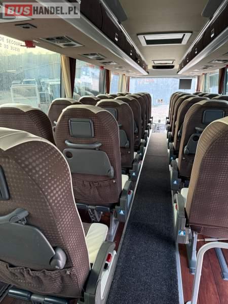 : klimatyzacja, WC, lodówka, kabina sypialna, oświetlenie indywidualne, nawiewy dyszowe, podnóżki, stoliczki, siateczki, ABS, ASR, tempomat, retarder, mikrofon, fotele odchylane i rozsuwane, rampa dla inwalidów, sejf, regulacja wysokości nadwozia, centralny zamek, podwójne szyby boczne, wspomaganie kierownicy, elektryczne lusterka, ogrzewanie stacjonarne, ESP