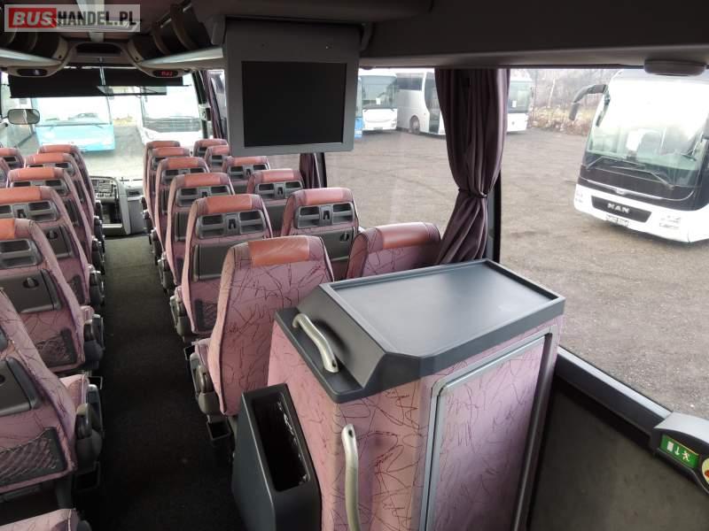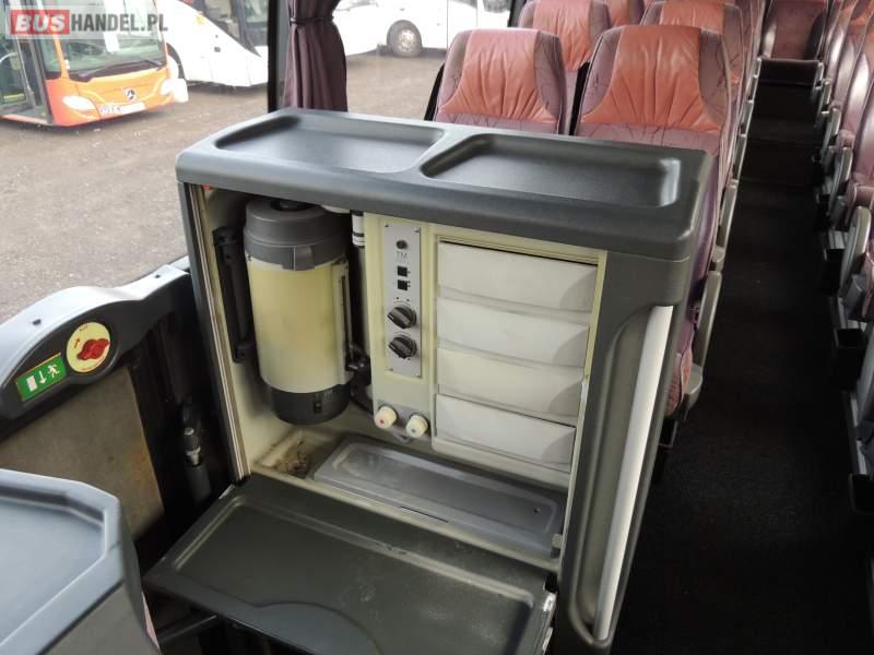: video, WC, lodówka, caffebar, kabina sypialna, oświetlenie indywidualne, nawiewy dyszowe, siateczki, ABS, ASR, tempomat, retarder, CD, stoliczki, klimatyzacja, radio, regulacja wysokości nadwozia, centralny zamek, podwójne szyby boczne, wspomaganie kierownicy, fotele odchylane i rozsuwane, DVD, ogrzewanie stacjonarne