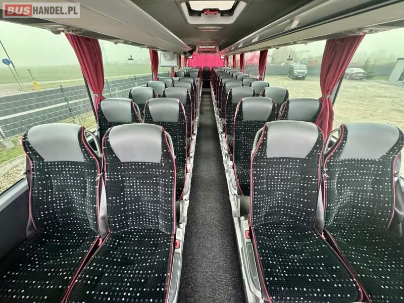 : WC, lodówka, caffebar, kabina sypialna, oświetlenie indywidualne, nawiewy dyszowe, siateczki, ABS, ASR, tempomat, retarder, telefon, CD, podnóżki, stoliczki, mikrofon, klimatyzacja, radio, regulacja wysokości nadwozia, centralny zamek, podwójne szyby boczne, wspomaganie kierownicy, elektryczne lusterka, aluminiowe felgi, fotele odchylane i rozsuwane, DVD, ESP