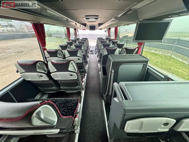 : WC, lodówka, caffebar, kabina sypialna, oświetlenie indywidualne, nawiewy dyszowe, siateczki, ABS, ASR, tempomat, retarder, telefon, CD, podnóżki, stoliczki, mikrofon, klimatyzacja, radio, regulacja wysokości nadwozia, centralny zamek, podwójne szyby boczne, wspomaganie kierownicy, elektryczne lusterka, aluminiowe felgi, fotele odchylane i rozsuwane, DVD, ESP