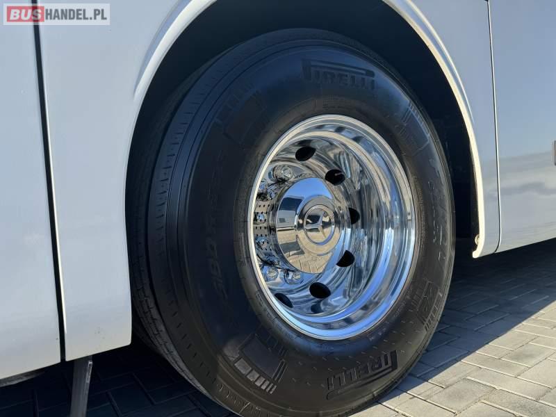 : WC, lodówka, caffebar, kabina sypialna, oświetlenie indywidualne, nawiewy dyszowe, siateczki, ABS, ASR, tempomat, retarder, telefon, CD, podnóżki, stoliczki, mikrofon, klimatyzacja, radio, regulacja wysokości nadwozia, centralny zamek, podwójne szyby boczne, wspomaganie kierownicy, elektryczne lusterka, aluminiowe felgi, fotele odchylane i rozsuwane, DVD, ESP