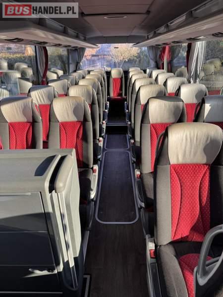 : WC, lodówka, caffebar, kabina sypialna, oświetlenie indywidualne, nawiewy dyszowe, siateczki, ABS, ASR, tempomat, retarder, podnóżki, stoliczki, mikrofon, klimatyzacja, radio, sejf, regulacja wysokości nadwozia, centralny zamek, podwójne szyby boczne, wspomaganie kierownicy, elektryczne lusterka, fotele odchylane i rozsuwane, DVD, ogrzewanie stacjonarne, ESP