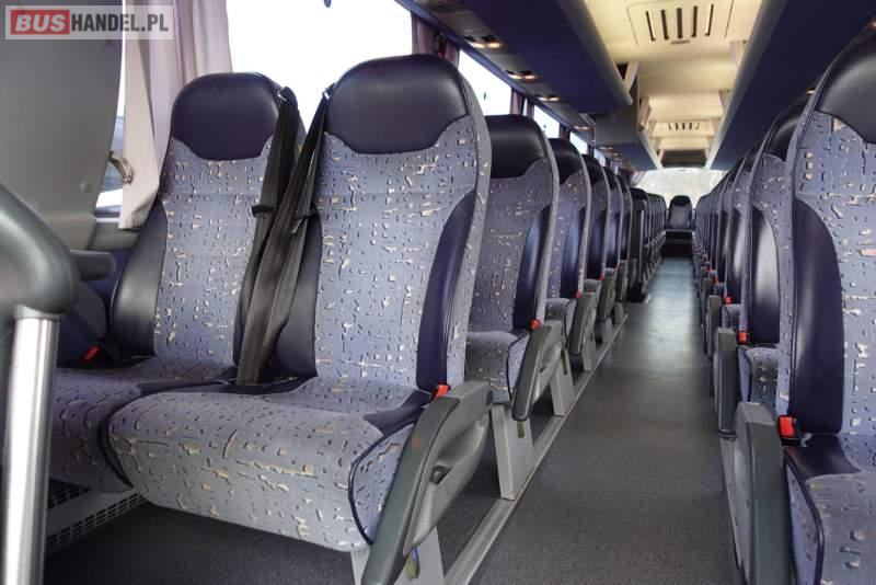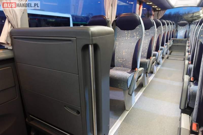 : video, WC, lodówka, caffebar, kabina sypialna, fotele odchylane, oświetlenie indywidualne, nawiewy dyszowe, siateczki, ABS, ASR, tempomat, retarder, nawigacja, CD, podnóżki, stoliczki, mikrofon, klimatyzacja, regulacja wysokości nadwozia, centralny zamek, podwójne szyby boczne, wspomaganie kierownicy, elektryczne lusterka, fotele odchylane i rozsuwane, DVD, ogrzewanie stacjonarne, ESP