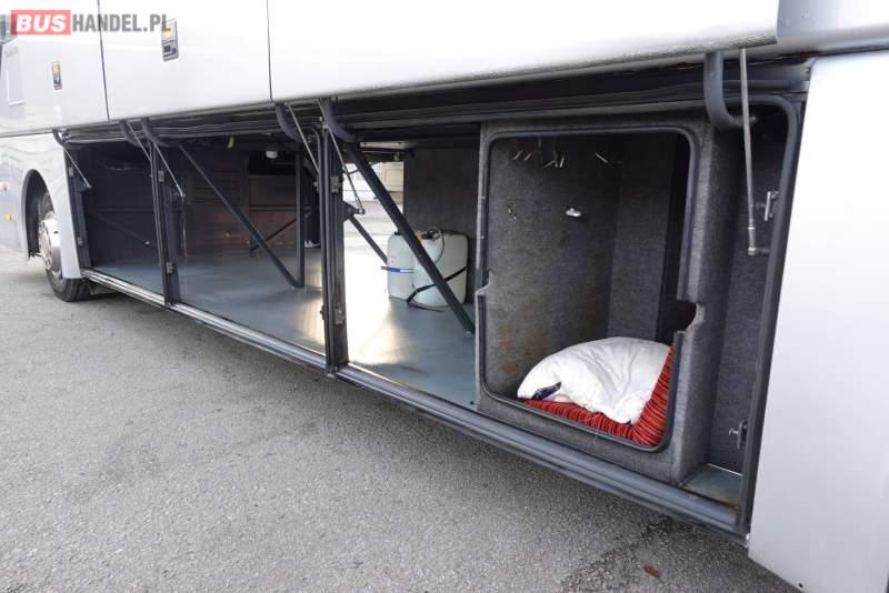 : video, WC, lodówka, caffebar, kabina sypialna, fotele odchylane, oświetlenie indywidualne, nawiewy dyszowe, siateczki, ABS, ASR, tempomat, retarder, nawigacja, CD, podnóżki, stoliczki, mikrofon, klimatyzacja, regulacja wysokości nadwozia, centralny zamek, podwójne szyby boczne, wspomaganie kierownicy, elektryczne lusterka, fotele odchylane i rozsuwane, DVD, ogrzewanie stacjonarne, ESP