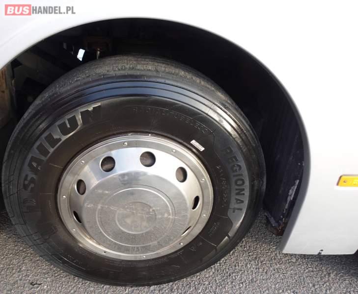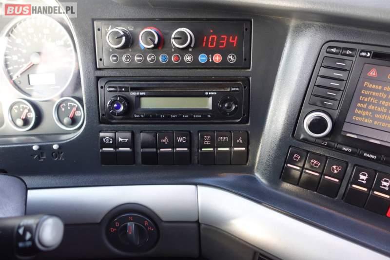 : video, WC, lodówka, caffebar, kabina sypialna, fotele odchylane, oświetlenie indywidualne, nawiewy dyszowe, siateczki, ABS, ASR, tempomat, retarder, nawigacja, CD, podnóżki, stoliczki, mikrofon, klimatyzacja, regulacja wysokości nadwozia, centralny zamek, podwójne szyby boczne, wspomaganie kierownicy, elektryczne lusterka, fotele odchylane i rozsuwane, DVD, ogrzewanie stacjonarne, ESP
