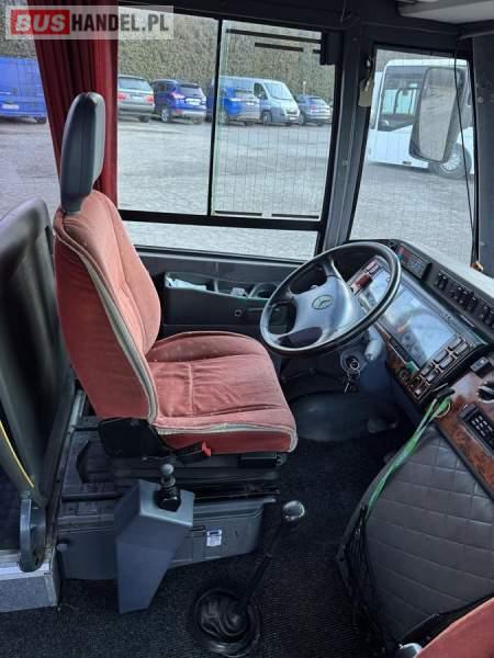 : lodówka, fotele odchylane, oświetlenie indywidualne, nawiewy dyszowe, siateczki, ABS, ASR, tempomat, retarder, podnóżki, stoliczki, mikrofon, klimatyzacja, radio, centralny zamek, podwójne szyby boczne, wspomaganie kierownicy, elektryczne lusterka, ogrzewanie stacjonarne