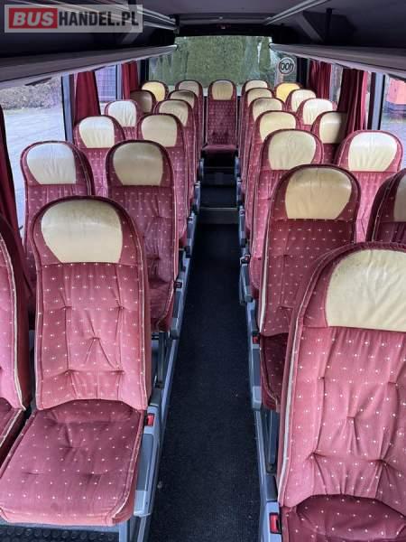 : lodówka, fotele odchylane, oświetlenie indywidualne, nawiewy dyszowe, siateczki, ABS, ASR, tempomat, retarder, podnóżki, stoliczki, mikrofon, klimatyzacja, radio, centralny zamek, podwójne szyby boczne, wspomaganie kierownicy, elektryczne lusterka, ogrzewanie stacjonarne