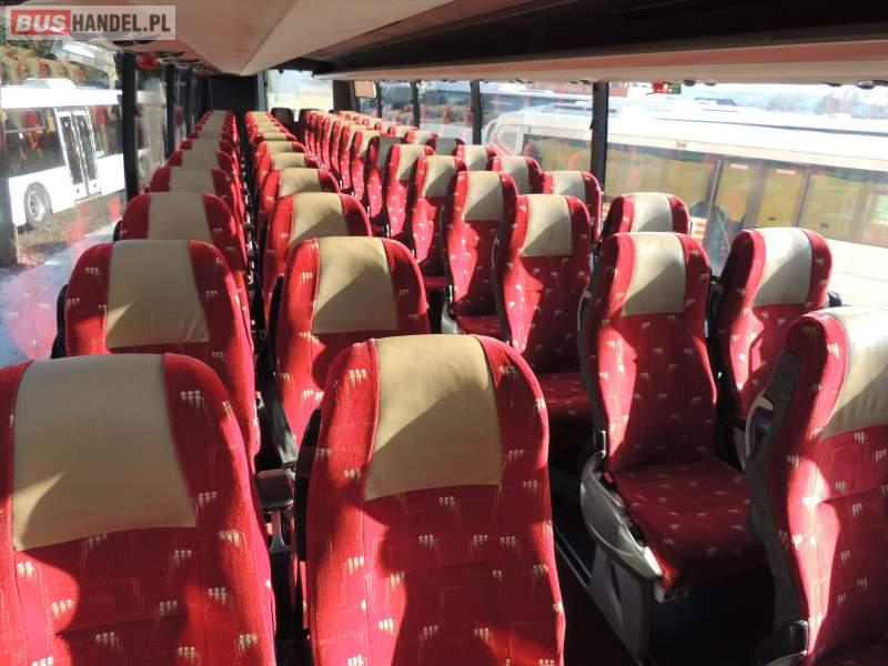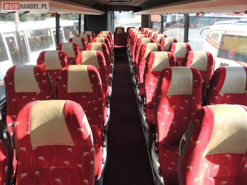 : klimatyzacja, WC, oświetlenie indywidualne, nawiewy dyszowe, ABS, ASR, retarder, CD, radio, fotele odchylane i rozsuwane, centralny zamek, podwójne szyby boczne, wspomaganie kierownicy, elektryczne lusterka, ogrzewanie stacjonarne, DVD