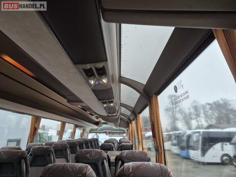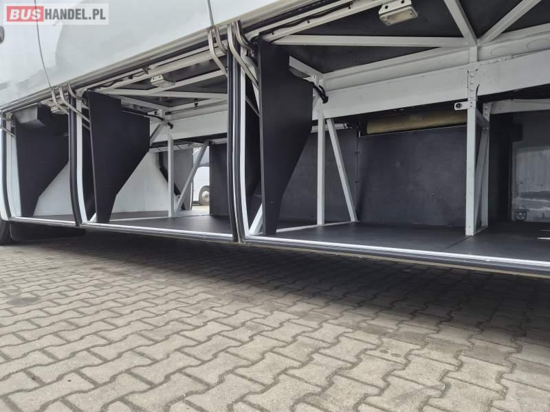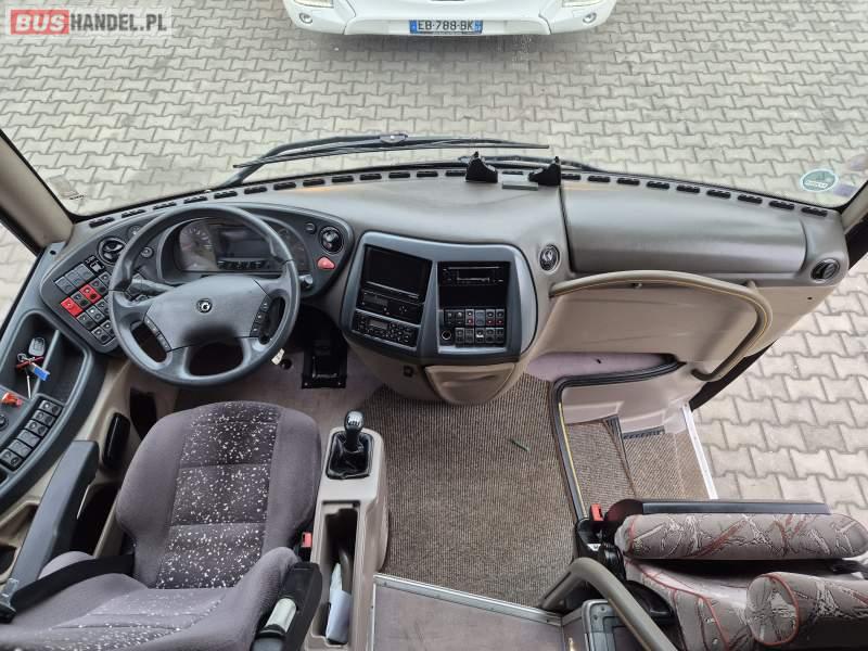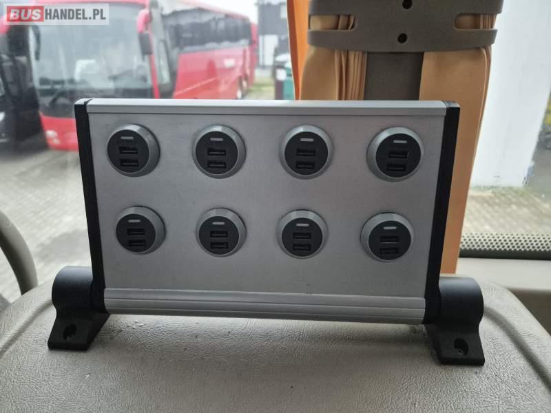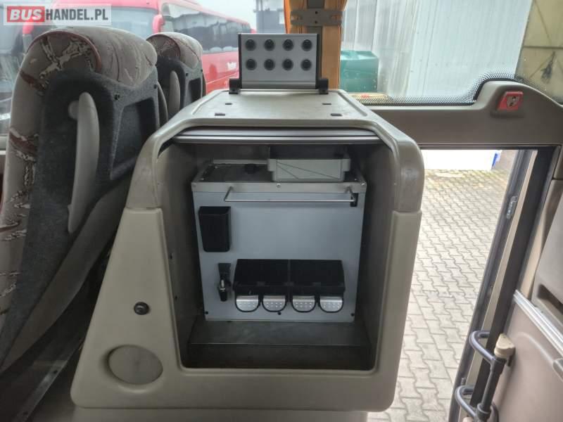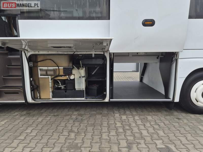 : video, WC, lodówka, caffebar, fotele odchylane, oświetlenie indywidualne, siateczki, ABS, tempomat, retarder, podnóżki, klimatyzacja, radio, regulacja wysokości nadwozia, centralny zamek, podwójne szyby boczne, wspomaganie kierownicy, elektryczne lusterka, DVD, ogrzewanie stacjonarne