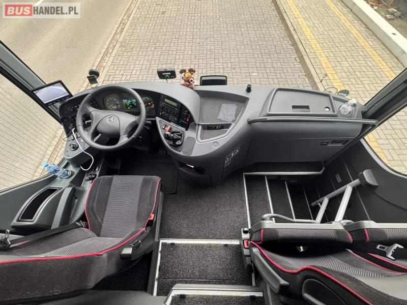 : WC, lodówka, oświetlenie indywidualne, nawiewy dyszowe, siateczki, ABS, ASR, tempomat, retarder, CD, podnóżki, stoliczki, mikrofon, klimatyzacja, radio, regulacja wysokości nadwozia, centralny zamek, podwójne szyby boczne, wspomaganie kierownicy, elektryczne lusterka, aluminiowe felgi, fotele odchylane i rozsuwane, DVD, ogrzewanie stacjonarne, ESP