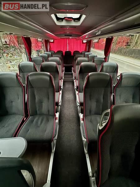 : WC, lodówka, oświetlenie indywidualne, nawiewy dyszowe, siateczki, ABS, ASR, tempomat, retarder, CD, podnóżki, stoliczki, mikrofon, klimatyzacja, radio, regulacja wysokości nadwozia, centralny zamek, podwójne szyby boczne, wspomaganie kierownicy, elektryczne lusterka, aluminiowe felgi, fotele odchylane i rozsuwane, DVD, ogrzewanie stacjonarne, ESP