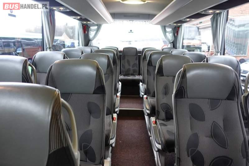 : klimatyzacja, video, WC, lodówka, caffebar, kabina sypialna, oświetlenie indywidualne, nawiewy dyszowe, fotele odchylane, podnóżki, stoliczki, siateczki, ABS, ASR, tempomat, retarder, CD, mikrofon, radio, fotele odchylane i rozsuwane, wyświetlacz matrix, regulacja wysokości nadwozia, centralny zamek, podwójne szyby boczne, wspomaganie kierownicy, elektryczne lusterka, ogrzewanie stacjonarne, DVD, hak holowniczy, ESP