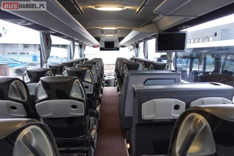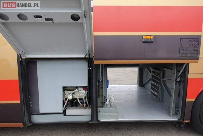 : klimatyzacja, video, WC, lodówka, caffebar, kabina sypialna, oświetlenie indywidualne, nawiewy dyszowe, fotele odchylane, podnóżki, stoliczki, siateczki, ABS, ASR, tempomat, retarder, CD, mikrofon, radio, fotele odchylane i rozsuwane, wyświetlacz matrix, regulacja wysokości nadwozia, centralny zamek, podwójne szyby boczne, wspomaganie kierownicy, elektryczne lusterka, ogrzewanie stacjonarne, DVD, hak holowniczy, ESP