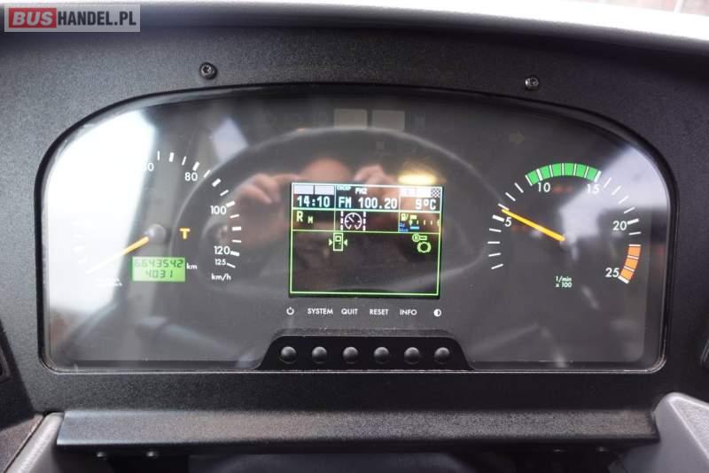 : klimatyzacja, video, WC, lodówka, caffebar, kabina sypialna, oświetlenie indywidualne, nawiewy dyszowe, fotele odchylane, podnóżki, stoliczki, siateczki, ABS, ASR, tempomat, retarder, CD, mikrofon, radio, fotele odchylane i rozsuwane, wyświetlacz matrix, regulacja wysokości nadwozia, centralny zamek, podwójne szyby boczne, wspomaganie kierownicy, elektryczne lusterka, ogrzewanie stacjonarne, DVD, hak holowniczy, ESP