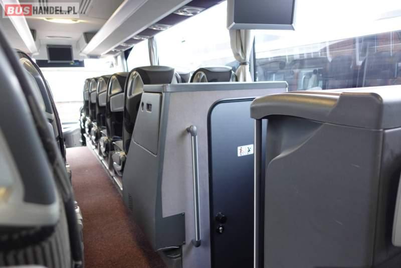 : klimatyzacja, video, WC, lodówka, caffebar, kabina sypialna, oświetlenie indywidualne, nawiewy dyszowe, fotele odchylane, podnóżki, stoliczki, siateczki, ABS, ASR, tempomat, retarder, CD, mikrofon, radio, fotele odchylane i rozsuwane, wyświetlacz matrix, regulacja wysokości nadwozia, centralny zamek, podwójne szyby boczne, wspomaganie kierownicy, elektryczne lusterka, ogrzewanie stacjonarne, DVD, hak holowniczy, ESP