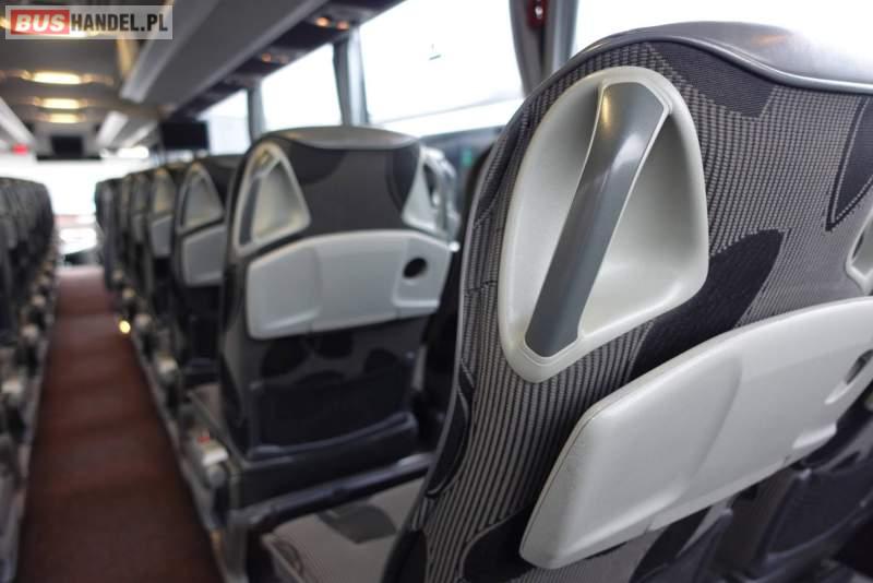 : klimatyzacja, video, WC, lodówka, caffebar, kabina sypialna, oświetlenie indywidualne, nawiewy dyszowe, fotele odchylane, podnóżki, stoliczki, siateczki, ABS, ASR, tempomat, retarder, CD, mikrofon, radio, fotele odchylane i rozsuwane, wyświetlacz matrix, regulacja wysokości nadwozia, centralny zamek, podwójne szyby boczne, wspomaganie kierownicy, elektryczne lusterka, ogrzewanie stacjonarne, DVD, hak holowniczy, ESP