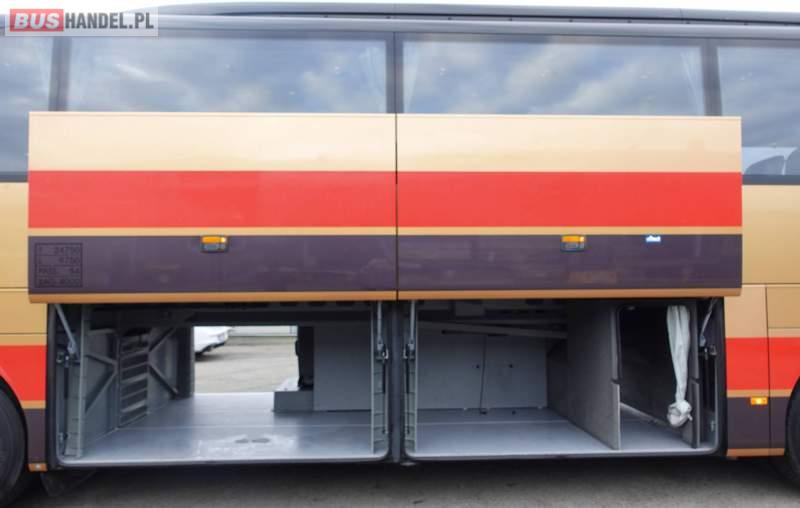 : video, WC, lodówka, caffebar, kabina sypialna, fotele odchylane, oświetlenie indywidualne, nawiewy dyszowe, siateczki, ABS, ASR, tempomat, retarder, CD, podnóżki, stoliczki, mikrofon, klimatyzacja, radio, wyświetlacz matrix, regulacja wysokości nadwozia, centralny zamek, podwójne szyby boczne, wspomaganie kierownicy, elektryczne lusterka, fotele odchylane i rozsuwane, DVD, ogrzewanie stacjonarne, hak holowniczy, ESP