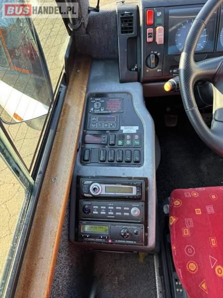 : lodówka, fotele odchylane, oświetlenie indywidualne, nawiewy dyszowe, siateczki, ABS, ASR, tempomat, retarder, podnóżki, stoliczki, mikrofon, klimatyzacja, radio, regulacja wysokości nadwozia, centralny zamek, podwójne szyby boczne, wspomaganie kierownicy, elektryczne lusterka, DVD, ogrzewanie stacjonarne