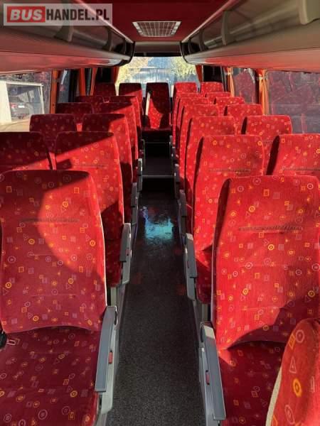 : lodówka, fotele odchylane, oświetlenie indywidualne, nawiewy dyszowe, siateczki, ABS, ASR, tempomat, retarder, podnóżki, stoliczki, mikrofon, klimatyzacja, radio, regulacja wysokości nadwozia, centralny zamek, podwójne szyby boczne, wspomaganie kierownicy, elektryczne lusterka, DVD, ogrzewanie stacjonarne