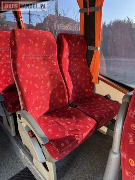 : lodówka, fotele odchylane, oświetlenie indywidualne, nawiewy dyszowe, siateczki, ABS, ASR, tempomat, retarder, podnóżki, stoliczki, mikrofon, klimatyzacja, radio, regulacja wysokości nadwozia, centralny zamek, podwójne szyby boczne, wspomaganie kierownicy, elektryczne lusterka, DVD, ogrzewanie stacjonarne