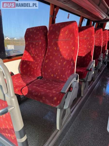 : lodówka, fotele odchylane, oświetlenie indywidualne, nawiewy dyszowe, siateczki, ABS, ASR, tempomat, retarder, podnóżki, stoliczki, mikrofon, klimatyzacja, radio, regulacja wysokości nadwozia, centralny zamek, podwójne szyby boczne, wspomaganie kierownicy, elektryczne lusterka, DVD, ogrzewanie stacjonarne