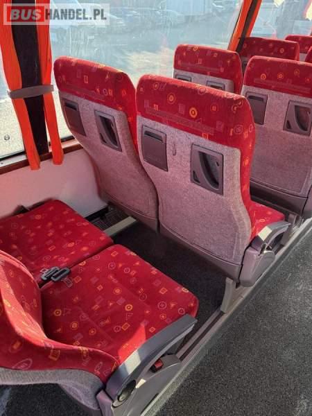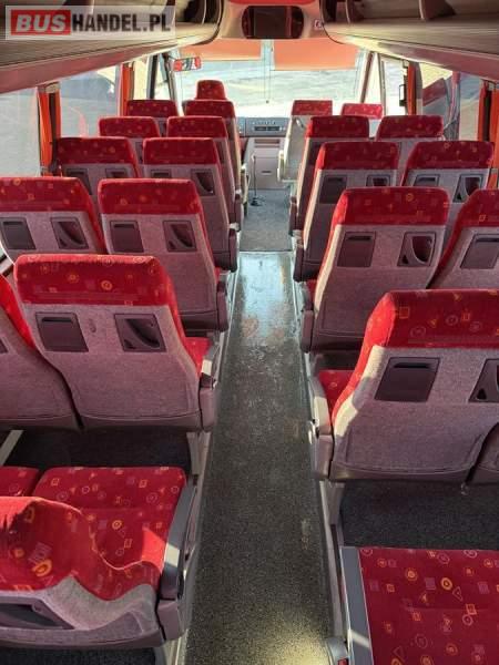 : lodówka, fotele odchylane, oświetlenie indywidualne, nawiewy dyszowe, siateczki, ABS, ASR, tempomat, retarder, podnóżki, stoliczki, mikrofon, klimatyzacja, radio, regulacja wysokości nadwozia, centralny zamek, podwójne szyby boczne, wspomaganie kierownicy, elektryczne lusterka, DVD, ogrzewanie stacjonarne
