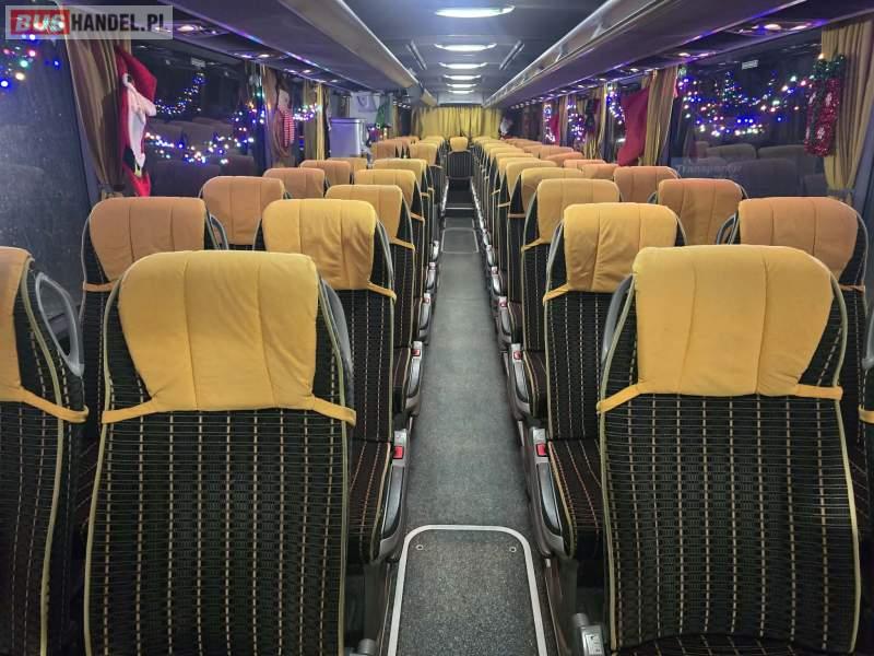 : video, WC, lodówka, kabina sypialna, fotele odchylane, oświetlenie indywidualne, nawiewy dyszowe, siateczki, ABS, tempomat, retarder, CD, podnóżki, stoliczki, mikrofon, klimatyzacja, radio, regulacja wysokości nadwozia, podwójne szyby boczne, wspomaganie kierownicy, elektryczne lusterka, fotele odchylane i rozsuwane, DVD, ogrzewanie stacjonarne, hak holowniczy, ESP