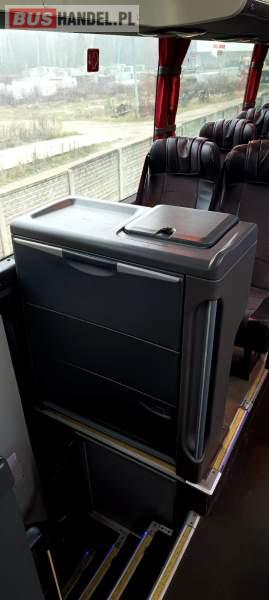 : video, WC, lodówka, caffebar, kabina sypialna, siateczki, ABS, ASR, tempomat, retarder, CD, stoliczki, mikrofon, klimatyzacja, radio, elektryczne lusterka, aluminiowe felgi, fotele odchylane i rozsuwane, DVD, ogrzewanie stacjonarne, ESP