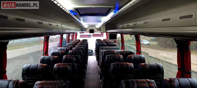 : video, WC, lodówka, caffebar, kabina sypialna, siateczki, ABS, ASR, tempomat, retarder, CD, stoliczki, mikrofon, klimatyzacja, radio, elektryczne lusterka, aluminiowe felgi, fotele odchylane i rozsuwane, DVD, ogrzewanie stacjonarne, ESP