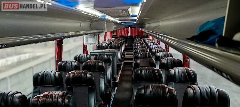 : video, WC, lodówka, caffebar, kabina sypialna, siateczki, ABS, ASR, tempomat, retarder, CD, stoliczki, mikrofon, klimatyzacja, radio, elektryczne lusterka, aluminiowe felgi, fotele odchylane i rozsuwane, DVD, ogrzewanie stacjonarne, ESP