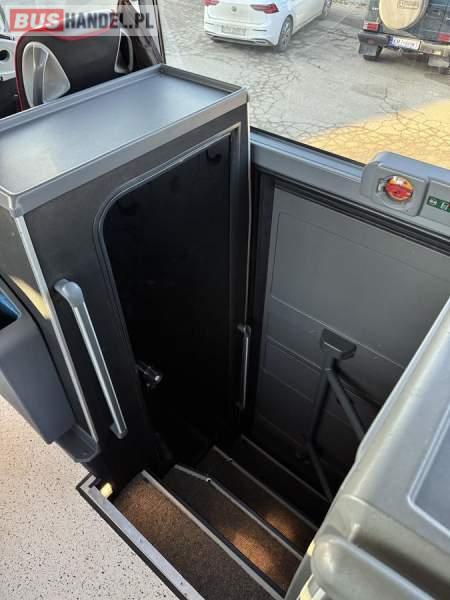 : WC, lodówka, caffebar, oświetlenie indywidualne, nawiewy dyszowe, siateczki, ABS, ASR, tempomat, retarder, podnóżki, stoliczki, mikrofon, klimatyzacja, radio, sejf, regulacja wysokości nadwozia, centralny zamek, podwójne szyby boczne, wspomaganie kierownicy, elektryczne lusterka, fotele odchylane i rozsuwane, DVD, ogrzewanie stacjonarne, ESP