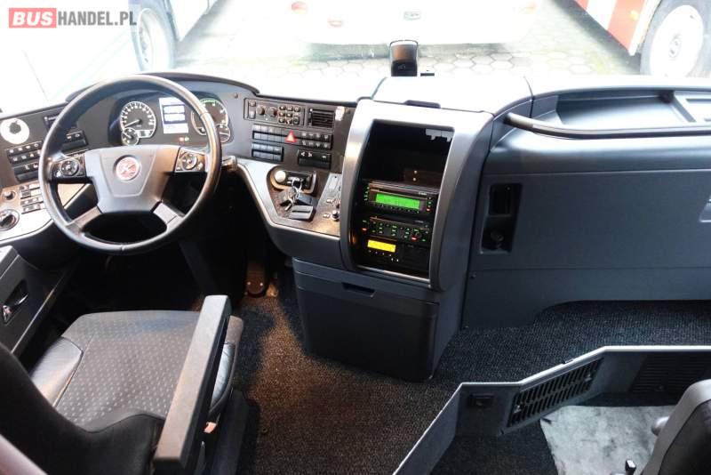 : video, WC, lodówka, caffebar, kabina sypialna, fotele odchylane, oświetlenie indywidualne, nawiewy dyszowe, siateczki, ABS, ASR, tempomat, retarder, nawigacja, CD, podnóżki, stoliczki, mikrofon, klimatyzacja, radio, kuchenka mikrofalowa, wyświetlacz matrix, regulacja wysokości nadwozia, centralny zamek, podwójne szyby boczne, wspomaganie kierownicy, elektryczne lusterka, fotele odchylane i rozsuwane, DVD, ogrzewanie stacjonarne, hak holowniczy, ESP