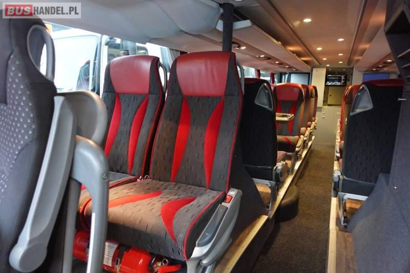 : video, WC, lodówka, caffebar, kabina sypialna, fotele odchylane, oświetlenie indywidualne, nawiewy dyszowe, siateczki, ABS, ASR, tempomat, retarder, nawigacja, CD, podnóżki, stoliczki, mikrofon, klimatyzacja, radio, kuchenka mikrofalowa, wyświetlacz matrix, regulacja wysokości nadwozia, centralny zamek, podwójne szyby boczne, wspomaganie kierownicy, elektryczne lusterka, fotele odchylane i rozsuwane, DVD, ogrzewanie stacjonarne, hak holowniczy, ESP
