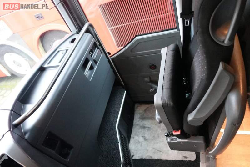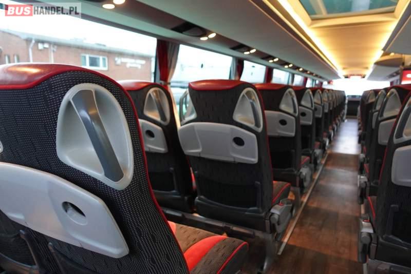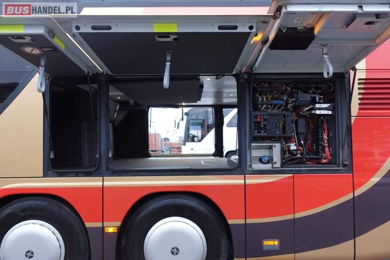 : klimatyzacja, video, WC, lodówka, caffebar, kabina sypialna, oświetlenie indywidualne, nawiewy dyszowe, fotele odchylane, podnóżki, stoliczki, siateczki, ABS, ASR, tempomat, retarder, nawigacja, CD, mikrofon, radio, fotele odchylane i rozsuwane, kuchenka mikrofalowa, wyświetlacz matrix, regulacja wysokości nadwozia, centralny zamek, podwójne szyby boczne, wspomaganie kierownicy, elektryczne lusterka, ogrzewanie stacjonarne, DVD, hak holowniczy, ESP