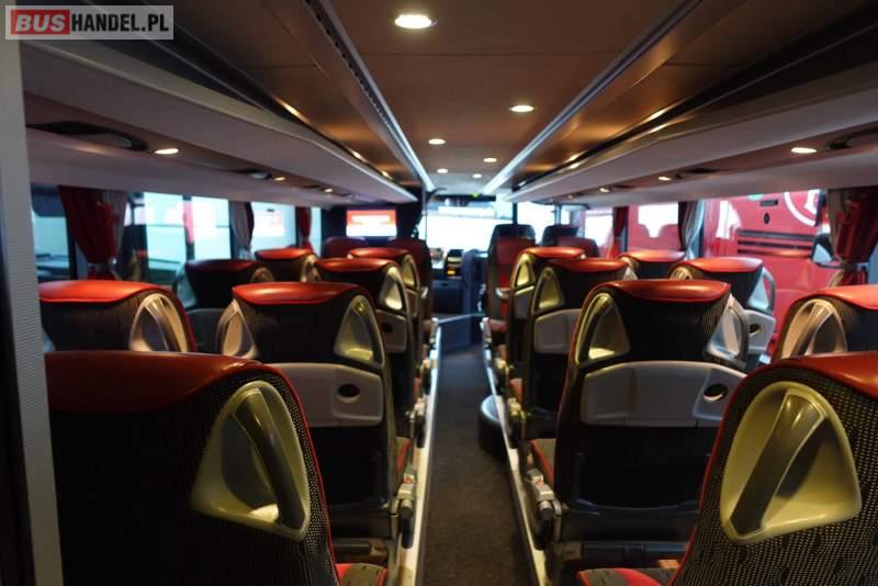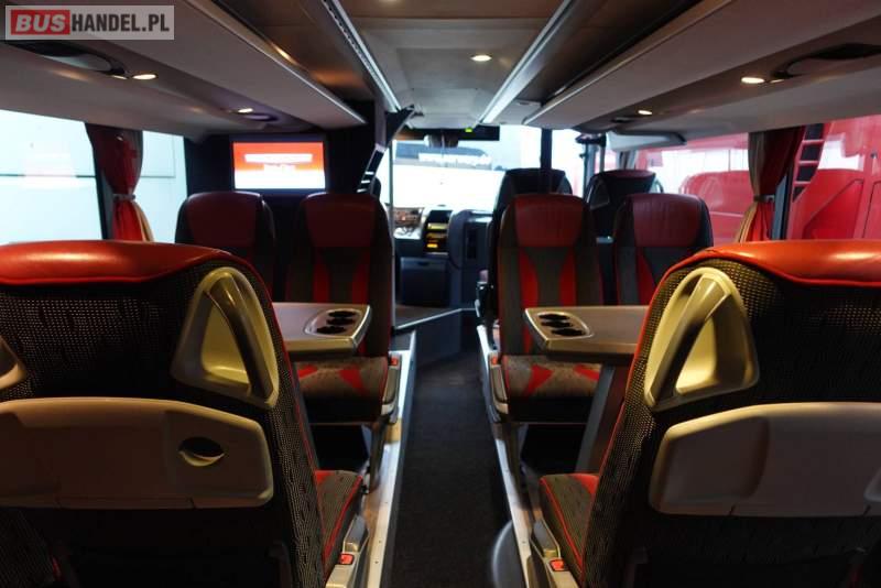: video, WC, lodówka, caffebar, kabina sypialna, fotele odchylane, oświetlenie indywidualne, nawiewy dyszowe, siateczki, ABS, ASR, tempomat, retarder, nawigacja, CD, podnóżki, stoliczki, mikrofon, klimatyzacja, radio, kuchenka mikrofalowa, wyświetlacz matrix, regulacja wysokości nadwozia, centralny zamek, podwójne szyby boczne, wspomaganie kierownicy, elektryczne lusterka, fotele odchylane i rozsuwane, DVD, ogrzewanie stacjonarne, hak holowniczy, ESP