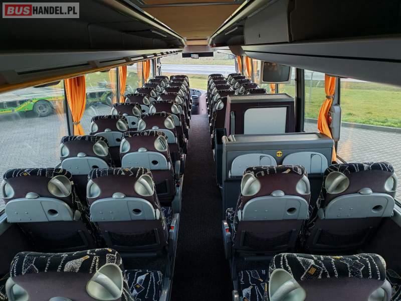 : WC, lodówka, caffebar, oświetlenie indywidualne, nawiewy dyszowe, siateczki, ABS, retarder, CD, podnóżki, mikrofon, klimatyzacja, radio, podwójne szyby boczne, wspomaganie kierownicy, fotele odchylane i rozsuwane, DVD, ESP