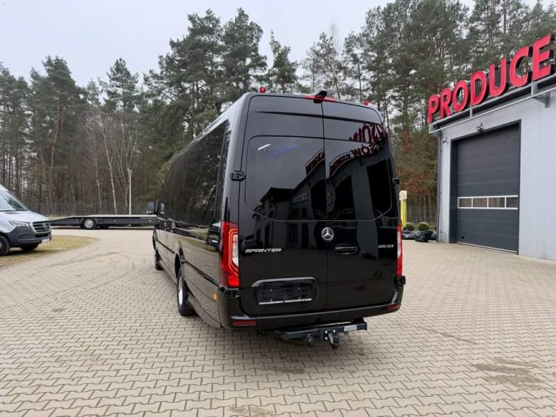 Fabrycznie nowy autobus Autobus dostępny od zaraz ! Nr. Oferty: 511 Mercedes-Benz Elegantbus Sprinter 519 EURO VI E GSR II 22+1+1 miejsc siedzących z możliwością szybkiej zmiany na 19+1+1 miejsc siedzących i zwiększenia przestrzeni bagażowej ! Wersja XXXL o długości 7, 87 m Pojemność: 1950 cm3 Pakiet stylistyczny Moc: 190 KM Rok produkcji: 2025 Kolor: Czarny Obsidian Metalik PODSTAWOWE I DODATKOWE WYPOSAŻENIE BAZOWE – ABS, SRS, ESP – Wspomaganie kierownicy – Automatyczna 9 stopniowa skrzynia biegów – Centralny zamek, immobiliser – Reflektory przednie w technologii LED – Tylne lampy częściowo w technologii LED – Asystent utrzymania pasa ruchu – Tempo 100 km/h – Elektryczne szyby – Sensor świateł oraz deszczu – Tempomat – Kierownica wielofunkcyjna, trójramienna – Stabilizacja poziom II – Wzmocnione opony 205/75/R16C – Dogrzewacz elektryczny PTC – Klimatyzacja półautomatyczna TEMPTRONIC – Fotel kierowcy komfortowy z podłokietnikiem – Światła z funkcją świateł do jazdy dziennej – Lusterko wsteczne – Asystent pasa ruchu – Zamykany schowek na kokpicie – Akumulator AGM 12V 95 Ah – Lusterko wsteczne wewnętrzne – Zbiornik paliwa powiększony: 93 litry – Chlapacze przednie – Chlapacze tylnie – Drugi akumulator w komorze silnika – Nawigacja satelitarna – Apple Car Play - Android Auto FOTELE PRZEDZIAŁU PASAŻERSKIEGO – Komfortowe turystyczne fotele przedziału pasażerskiego (regulacja oparcia oraz przesuw boczny) – Fotele posiadają pasy bezpieczeństwa, podłokietniki, siateczki, stoliki, rączki, komfortowe zagłówki, – Fotele montowane na podestach – Fotel pilota na słupku B PRZESZKLENIE POJAZDU – Szyby podwójne, przyciemniane fabrycznie – Firanki przeciwsłoneczne na prowadnicach – Szyby drzwi elektrycznych podgrzewane SYSTEMY GRZEWCZE – Grzejniki konwektorowe wodne zainstalowane w przedziale pasażerskim po lewej i prawej stronie – Postojowe ogrzewanie wodne, oryginalne EBERSCHPRECHER 5 kW KLIMATYZACJA – Automatyczna Klimatyzacja dachowa WEBASTO 12, 5 kW OŚWIETLENIE – Oświetlenie indywidualne – Oświetlenie postojowe – Oświetlenie nocne – Podświetlane stopnie wejściowe – Podesty z podświetleniem LED – Lampy obrysowe dachowe LED MULTIMEDIA – System multimedialny MBUX 10, 5 cala – Oryginalna Kamera Cofania – Mikrofon – Nagłośnienie przestrzeni pasażerskiej PIONNER – Gniazda USB dla każdego rzędu siedzeń – Przetwornica 230v PRZECHOWYWANIE BAGAŻU I UBRAŃ – Turystyczne półki bagażowe – Lodówka o pojemności 40 litrów – Pogłębiony tylny bagażnik – Wieszaki ubraniowe ELEMENTY BEZPIECZEŃSTWA – Podłoga antypoślizgowa PCV, odporna na ścieranie, wodoodporna – Szyberdach wentylacyjny / wyjście awaryjne – Młotki bezpieczeństwa – Dodatkowa gaśnica 2 kg ELEMENTY FUNKCJONALNE – Elektryczne drzwi wejściowe sterowane z przycisku i pilota – Podwójny stopień wejściowy oświetlony LED – Przedłużenie pojazdu w tylnej części – Hak holowniczy LIFTING ZEWNĘTRZNY – Lakierowane zderzaki, listwy, klamki, lusterka i grill w kolorze pojazdu – Spojlery dolne w kolorze nadwozia Sprzedający: