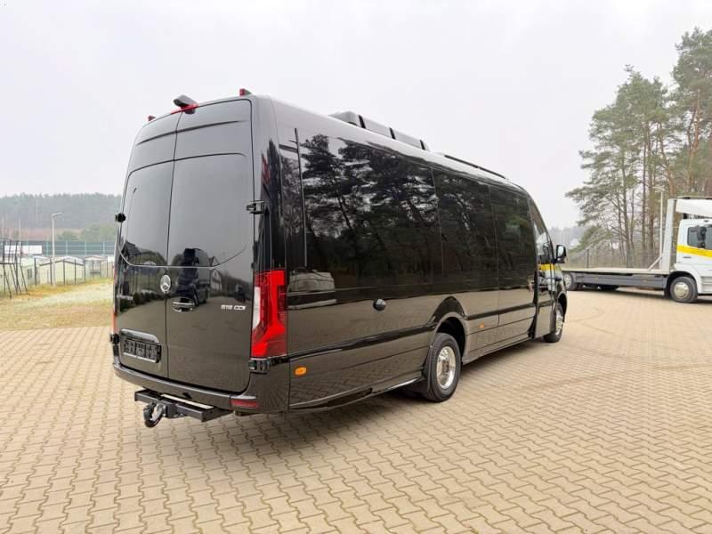 Fabrycznie nowy autobus Autobus dostępny od zaraz ! Nr. oferty: 897 Mercedes-Benz Elegantbus Sprinter 519 EURO VI E GSR II 22+1+1 miejsc siedzących z możliwością szybkiej zmiany na 19+1+1 miejsc siedzących i zwiększenia przestrzeni bagażowej ! Full Panorama Relingi dachowe Wersja XXXL o długości 7, 87 m Pojemność: 1950 cm3 Pakiet stylistyczny Moc: 190 KM Rok produkcji: 2025 Kolor: Czarny Obsidian Metalik PODSTAWOWE I DODATKOWE WYPOSAŻENIE BAZOWE – ABS, SRS, ESP – Wspomaganie kierownicy – Automatyczna 9 stopniowa skrzynia biegów – Centralny zamek, immobiliser – Reflektory przednie w technologii LED – Światła przeciwmgłowe przednie z funkcja doświetlania zakrętów – Tylne lampy częściowo w technologii LED – Asystent utrzymania pasa ruchu – Tempo 100 km/h – Elektryczne szyby – Sensor świateł oraz deszczu – Tempomat – Kierownica wielofunkcyjna, trójramienna – Stabilizacja poziom II – Wzmocnione opony 205/75/R16C – Dogrzewacz elektryczny PTC – Klimatyzacja półautomatyczna TEMPTRONIC – Fotel kierowcy komfortowy z podłokietnikiem – Światła z funkcją świateł do jazdy dziennej – Lusterko wsteczne – Asystent pasa ruchu – Zamykany schowek na kokpicie – Akumulator AGM 12V 95 Ah – Lusterko wsteczne wewnętrzne – Zbiornik paliwa powiększony: 93 litry – Chlapacze przednie – Chlapacze tylnie – Drugi akumulator w komorze silnika – Nawigacja satelitarna – Apple Car Play - Android Auto FOTELE PRZEDZIAŁU PASAŻERSKIEGO – Komfortowe turystyczne fotele przedziału pasażerskiego (regulacja oparcia oraz przesuw boczny) w kolorze jasno brązowym – Fotele posiadają pasy bezpieczeństwa, podłokietniki, siateczki, stoliki, rączki, komfortowe zagłówki, – Fotele montowane na podestach – Fotel pilota na słupku B PRZESZKLENIE POJAZDU – Szyby boczne panoramiczne – Szyby podwójne, przyciemniane fabrycznie – Firanki przeciwsłoneczne na prowadnicach – Szyby drzwi elektrycznych podgrzewane SYSTEMY GRZEWCZE – Grzejniki konwektorowe wodne zainstalowane w przedziale pasażerskim po lewej i prawej stronie – Postojowe ogrzewanie wodne, oryginalne EBERSCHPRECHER 5 kW KLIMATYZACJA – Automatyczna Klimatyzacja dachowa WEBASTO 12, 5 kW OŚWIETLENIE – Oświetlenie indywidualne – Oświetlenie postojowe – Oświetlenie nocne – Podświetlane stopnie wejściowe – Podesty z podświetleniem LED – Lampy obrysowe dachowe LED – Dodatkowe oświetlenie ambientowe na bokach pojazdu w listach imitacja mahoń MULTIMEDIA – System multimedialny MBUX 10, 5 cala – Oryginalna Kamera Cofania – Mikrofon – Nagłośnienie przestrzeni pasażerskiej PIONNER – Gniazda USB dla każdego rzędu siedzeń – Przetwornica 230v PRZECHOWYWANIE BAGAŻU I UBRAŃ – Turystyczne półki bagażowe – Lodówka o pojemności 40 litrów – Pogłębiony tylny bagażnik – Wieszaki ubraniowe ELEMENTY BEZPIECZEŃSTWA – Podłoga antypoślizgowa PCV, odporna na ścieranie, wodoodporna – Szyberdach wentylacyjny / wyjście awaryjne – Młotki bezpieczeństwa – Dodatkowa gaśnica 2 kg ELEMENTY FUNKCJONALNE – Elektryczne drzwi wejściowe – Dodatkowe sterowanie drzwi elektrycznych z pilota – Podwójny stopień wejściowy oświetlony LED – Przedłużenie pojazdu w tylnej części – Hak holowniczy LIFTING ZEWNĘTRZNY – Lakierowane zderzaki, listwy, klamki, lusterka i grill w kolorze pojazdu – Spojlery dolne w kolorze nadwozia – Relingi dachowe Sprzedający: