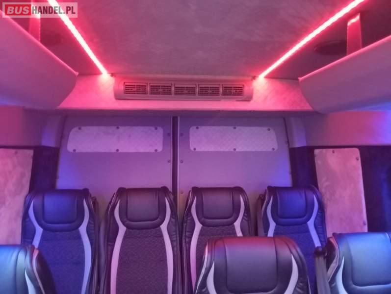 : video, fotele odchylane, oświetlenie indywidualne, nawiewy dyszowe, siateczki, ABS, ASR, tempomat, telefon, nawigacja, CD, stoliczki, mikrofon, klimatyzacja, radio, wyświetlacz matrix, rampa dla inwalidów, sejf, centralny zamek, podwójne szyby boczne, wspomaganie kierownicy, elektryczne lusterka, fotele odchylane i rozsuwane, DVD, ogrzewanie stacjonarne, hak holowniczy, ESP