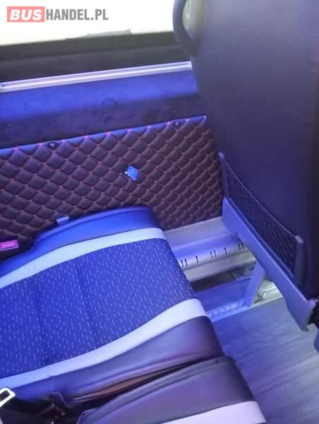 : video, fotele odchylane, oświetlenie indywidualne, nawiewy dyszowe, siateczki, ABS, ASR, tempomat, telefon, nawigacja, CD, stoliczki, mikrofon, klimatyzacja, radio, wyświetlacz matrix, rampa dla inwalidów, sejf, centralny zamek, podwójne szyby boczne, wspomaganie kierownicy, elektryczne lusterka, fotele odchylane i rozsuwane, DVD, ogrzewanie stacjonarne, hak holowniczy, ESP