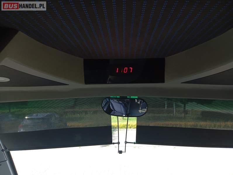 : klimatyzacja, video, lodówka, oświetlenie indywidualne, nawiewy dyszowe, fotele odchylane, podnóżki, stoliczki, siateczki, ABS, ASR, tempomat, retarder, telefon, nawigacja, CD, mikrofon, radio, fotele odchylane i rozsuwane, wyświetlacz matrix, sejf, regulacja wysokości nadwozia, centralny zamek, podwójne szyby boczne, wspomaganie kierownicy, elektryczne lusterka, ogrzewanie stacjonarne, DVD, hak holowniczy, ESP