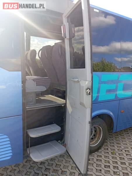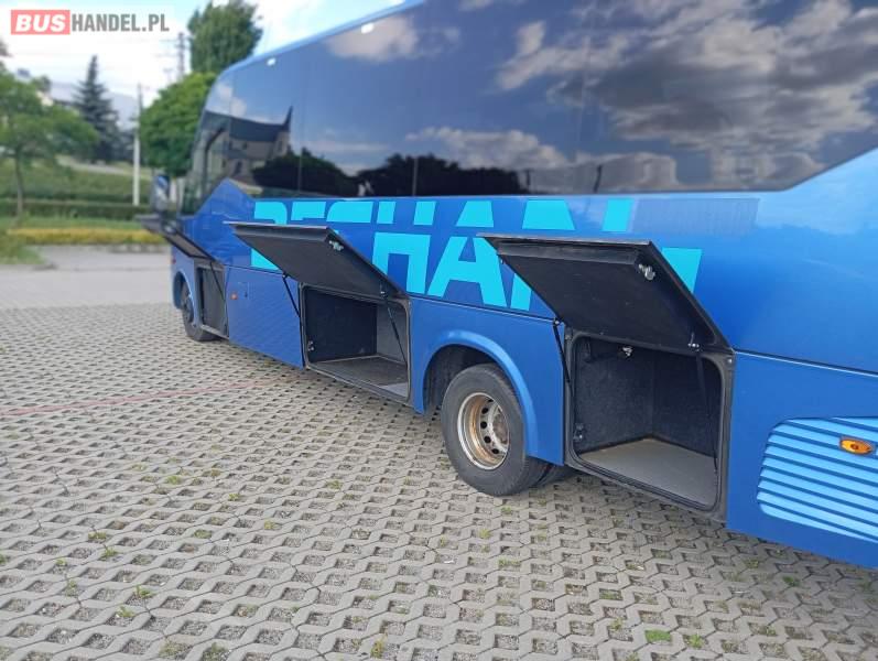 : klimatyzacja, video, lodówka, oświetlenie indywidualne, nawiewy dyszowe, fotele odchylane, podnóżki, stoliczki, siateczki, ABS, ASR, tempomat, retarder, telefon, nawigacja, CD, mikrofon, radio, fotele odchylane i rozsuwane, wyświetlacz matrix, sejf, regulacja wysokości nadwozia, centralny zamek, podwójne szyby boczne, wspomaganie kierownicy, elektryczne lusterka, ogrzewanie stacjonarne, DVD, hak holowniczy, ESP