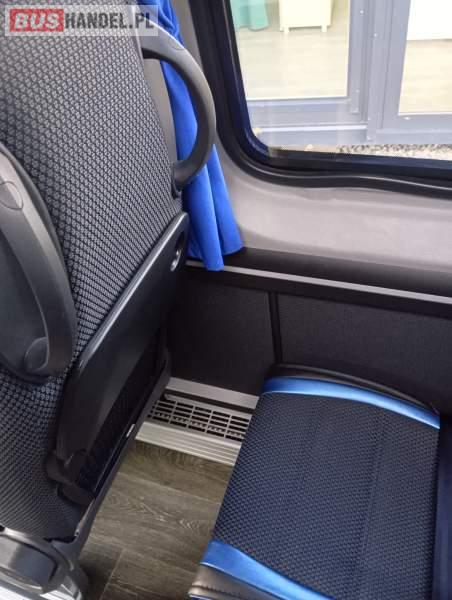 : klimatyzacja, video, lodówka, oświetlenie indywidualne, nawiewy dyszowe, fotele odchylane, podnóżki, stoliczki, siateczki, ABS, ASR, tempomat, retarder, telefon, nawigacja, CD, mikrofon, radio, fotele odchylane i rozsuwane, wyświetlacz matrix, sejf, centralny zamek, podwójne szyby boczne, wspomaganie kierownicy, elektryczne lusterka, ogrzewanie stacjonarne, DVD, hak holowniczy, ESP