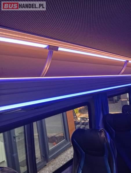 : video, lodówka, fotele odchylane, oświetlenie indywidualne, nawiewy dyszowe, siateczki, ABS, ASR, tempomat, retarder, telefon, nawigacja, CD, podnóżki, stoliczki, mikrofon, klimatyzacja, radio, wyświetlacz matrix, sejf, centralny zamek, podwójne szyby boczne, wspomaganie kierownicy, elektryczne lusterka, fotele odchylane i rozsuwane, DVD, ogrzewanie stacjonarne, hak holowniczy, ESP