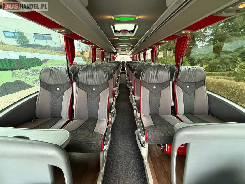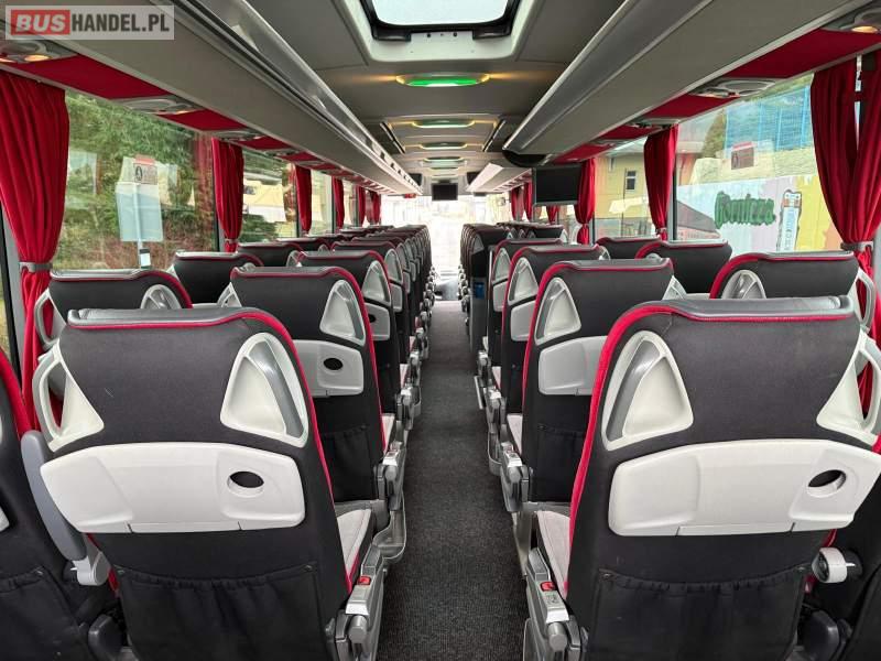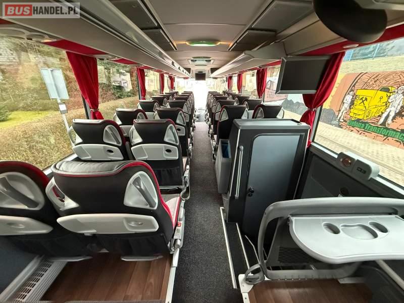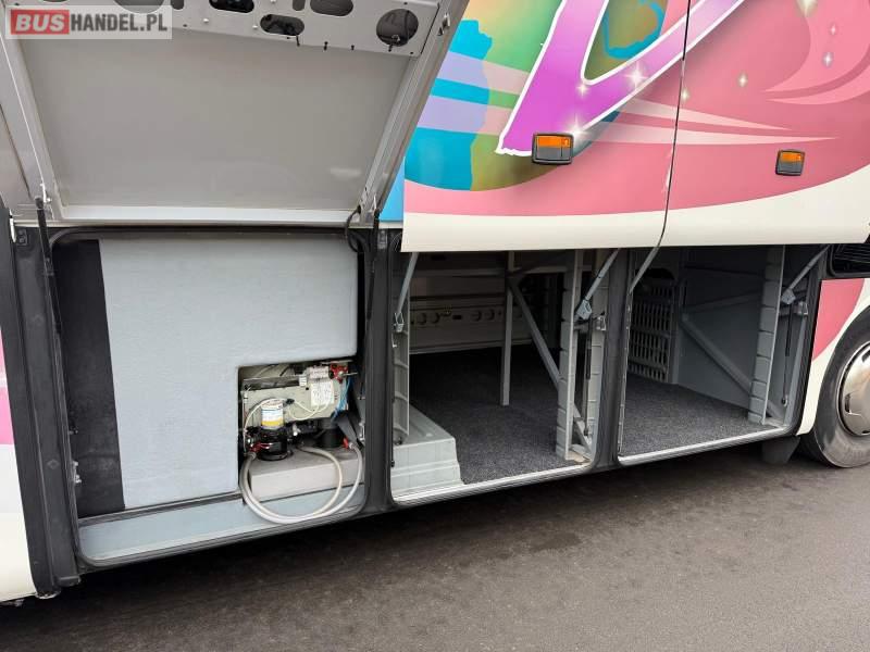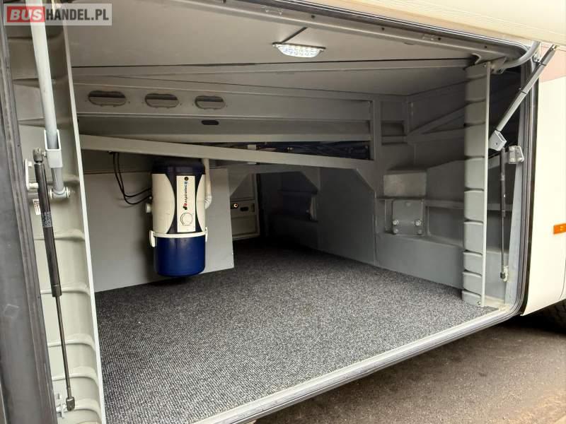 : video, WC, lodówka, caffebar, oświetlenie indywidualne, nawiewy dyszowe, siateczki, ABS, ASR, tempomat, retarder, nawigacja, CD, podnóżki, stoliczki, mikrofon, klimatyzacja, radio, regulacja wysokości nadwozia, centralny zamek, podwójne szyby boczne, wspomaganie kierownicy, elektryczne lusterka, fotele odchylane i rozsuwane, DVD, ogrzewanie stacjonarne