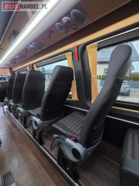 : klimatyzacja, oświetlenie indywidualne, nawiewy dyszowe, fotele odchylane, podnóżki, stoliczki, siateczki, ABS, ASR, tempomat, mikrofon, radio, regulacja wysokości nadwozia, centralny zamek, podwójne szyby boczne, wspomaganie kierownicy, elektryczne lusterka, ogrzewanie stacjonarne