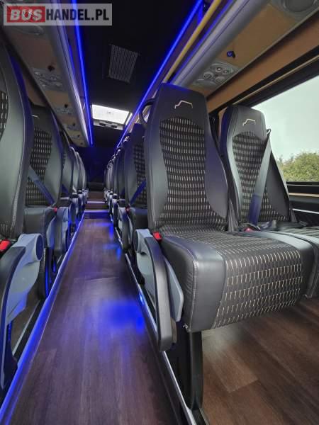: klimatyzacja, oświetlenie indywidualne, nawiewy dyszowe, fotele odchylane, podnóżki, stoliczki, siateczki, ABS, ASR, tempomat, mikrofon, radio, regulacja wysokości nadwozia, centralny zamek, podwójne szyby boczne, wspomaganie kierownicy, elektryczne lusterka, ogrzewanie stacjonarne